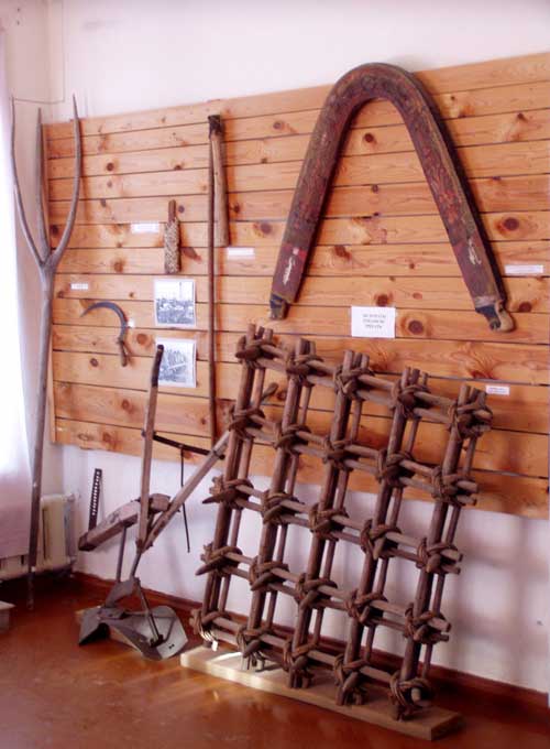 Конская дуга с резьбой и росписью в экспозиции крестьянского зала музея. 1856 г.