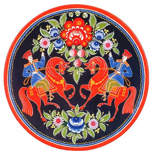 Всадники – один из любимых образов в работах старых мастеров и в творчестве современных художниц городецкой росписи.